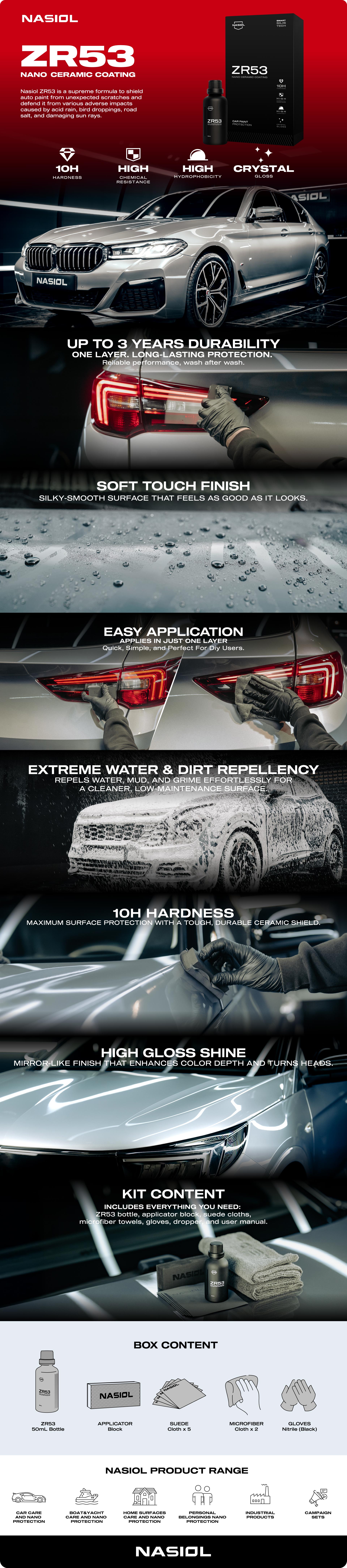 Nasiol ZR53 Car Nano Ceramic Coating and Paint Protection-10H-3 Years Durability-1.69FlOz (8680256690051)